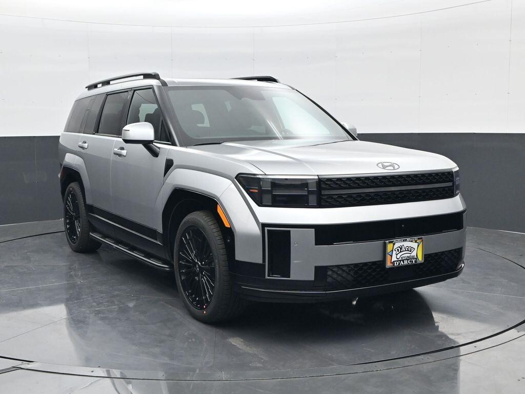 Option Group 01, 12 Speakers, 3rd row seats: bench, 4-Wheel Disc Brakes, ABS brakes, Air Conditioning, Alloy wheels, AM/FM radio: SiriusXM, Apple CarPlay & Android Auto, Auto High-beam Headlights, Auto-dimming Rear-View mirror, Automatic temperature control, Brake assist, Bumpers: body-color, Cargo Net, Carpeted Floor Mats, Delay-off headlights, Driver door bin, Driver vanity mirror, Dual front impact airbags, Dual front side impact airbags, Electronic Stability Control, Emergency communication system, Exterior Parking Camera Rear, Four wheel independent suspension, Front anti-roll bar, Front Bucket Seats, Front Center Armrest, Front dual zone A/C, Front reading lights, Fully automatic headlights, Garage door transmitter: HomeLink, Heads-Up Display, Heated & Ventilated Front Bucket Seats, Heated door mirrors, Heated front seats, Heated rear seats, Heated steering wheel, Illuminated entry, Knee airbag, Leather steering wheel, Low tire pressure warning, Memory seat, Navigation System, Occupant sensing airbag, Outside temperature display, Overhead airbag, Overhead console, Panic alarm, Passenger door bin, Passenger vanity mirror, Power door mirrors, Power driver seat, Power Liftgate, Power moonroof, Power passenger seat, Power steering, Power windows, Quilted Premium Nappa Leather Seat Trim, Radio: AM/FM/HD Bose Premium Audio System, Rain sensing wipers, Rear anti-roll bar, Rear side impact airbag, Rear window defroster, Rear window wiper, Remote keyless entry, Security system, Side Steps, Speed control, Speed-sensing steering, Split folding rear seat, Spoiler, Steering wheel mounted audio controls, Tachometer, Telescoping steering wheel, Tilt steering wheel, Traction control, Trip computer, Turn signal indicator mirrors, Variably intermittent wipers, Ventilated front seats, and Wheels: 20" x 8.5J Unique Dark Finish Alloy. Price includes: $4250 - Hyundai HMF Dealer Choice: $4250 discount and 5.99% APR for 24 months. $44.32 per $1000 financed. Available to well qualified buyers who finance through Hyundai Motor Finance. H704. Exp. 11/03/2025